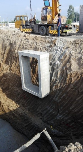 با باکس های بتنی پیش ساخته به ابعاد ۳/۵ * ۲/۵ متر و لوله گذاری کاروگیت به قطر های ۱۰۰۰ و ۱۲۰۰ میلیمتر جمعا به طول ۲۰۰۰ متر
