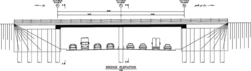 سازه مورد نظر از دو پل رفت و برگشت بر روی زیر گذر تشکیل شده است. هر یک از پلهای رفت و برگشت دارای دو دهانه حدود ۱۹ متر و با پایه میانی می باشد. عرض پلها حدود ۲۲ متر و ثابت است.